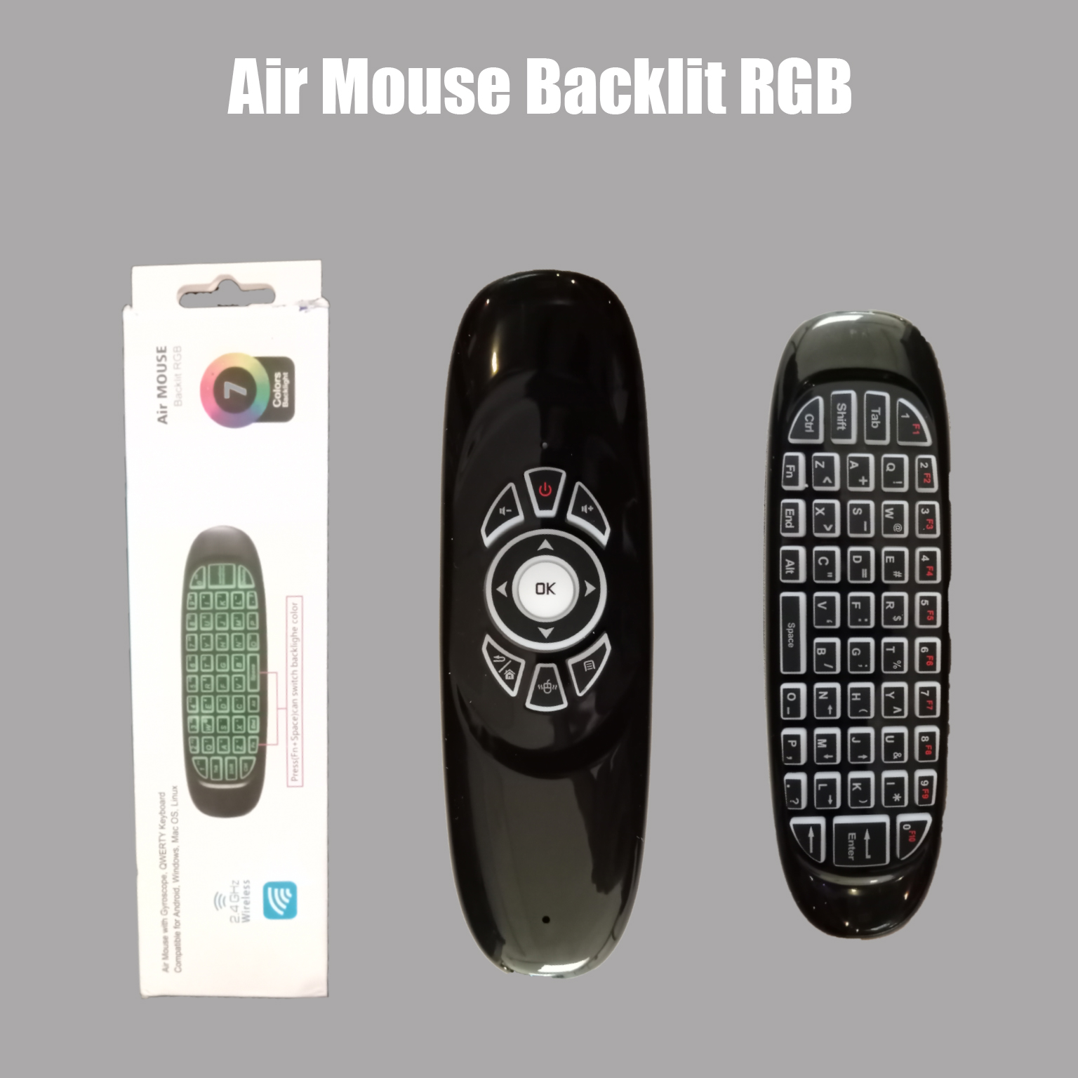 This Air Mouse Backlit RGB Remote combines motion control and a mini keyboard in one sleek device. It allows smooth navigation with hand movements and easy typing with its colorful backlit keys. Ideal for smart TVs, laptops, and media devices, making your experience faster and more convenient.