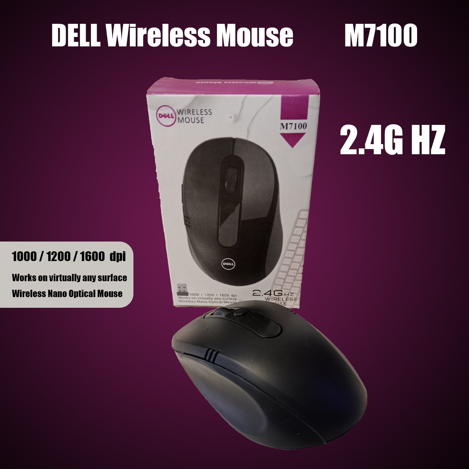 Upgrade your everyday computing with the Dell Wireless Mouse M7100. Designed for comfort and accuracy, it features stable 2.4GHz wireless performance, multiple DPI settings for customizable sensitivity, and a compact nano receiver for easy plug-and-play use. Perfect for work, browsing, and casual use.
